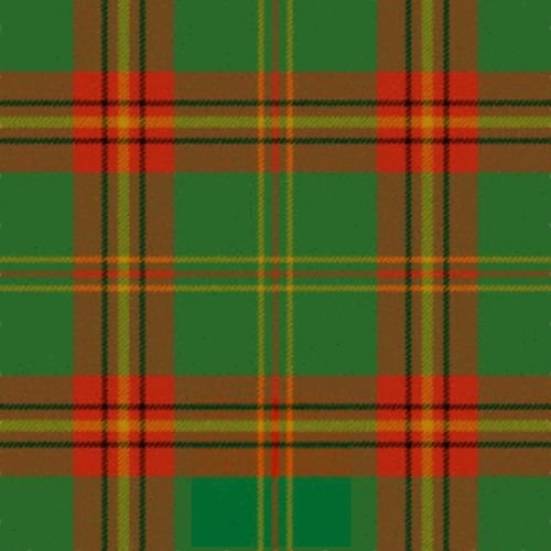 This Tartan features a distinctive color palette, with bold greens, reds, and yellow lines. The green represents the Scottish landscapes, embodying nature and growth. The red stripes are a tribute to the courage and sacrifice of the clan's warriors, while the blue adds warmth and steadiness, perhaps reflecting the earthy Highlands from which they hail. The tartan's pattern features broad green fields intersected by thinner red and yellow lines, creating a visually striking balance that conveys both heritage and strength. Made from 100% acrylic wool, it offers durability and comfort.