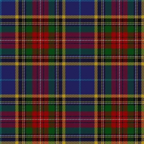 The Beaton Tartan showcases a striking blend of deep blue, bright red, green, yellow, black, and white, arranged in a classic plaid pattern. Each color holds significance.'Deep Blue represents loyalty.'Bright Red stands for bravery and strength.'Green signifies the natural beauty of Scotland.'Yellow highlights the wisdom and influence of the Beatons.'Black and white add contrast and depth to the overall design, emphasizing the intricate weave of tradition and modernity.'The design features a harmonious balance of these colors, with red and blue dominating, creating a bold and eye-catching appearance. Crafted from 100% acrylic wool, the tartan ensures durability and comfort for any occasion.
