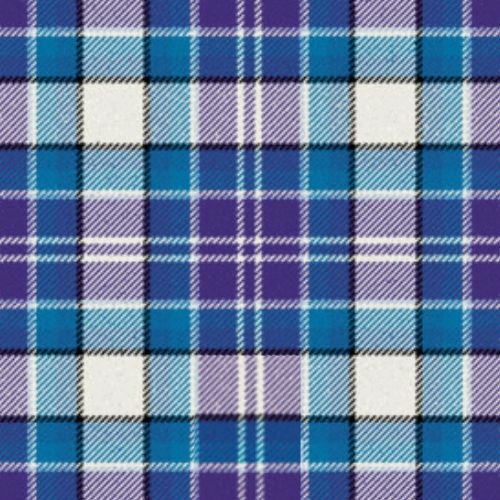This tartan features a striking combination of blue, purple, white, and black, arranged in a classic check pattern. The blue symbolizes loyalty and strength, while the purple adds a regal and elegant touch. The white represents purity and peace, providing a bright contrast, while the black lines offer depth and balance to the overall design. Each element of the pattern conveys a story of resilience and unity among the Scottish clans. Crafted from 100% acrylic wool, this tartan is designed for durability and comfort, making it perfect for any occasion.