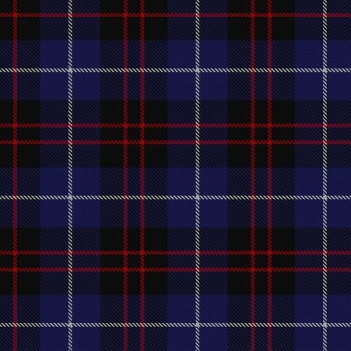 The tartan in the image features a rich combination of deep navy blue and black, accented with vibrant red and white lines. The deep blue symbolizes loyalty and the vast Scottish skies, while the black adds depth and strength. The bold red lines introduce a dynamic and passionate touch, representing courage and energy, and the fine white stripes provide clarity and balance. This striking blend of colors creates a classic and refined pattern, perfectly capturing the essence of tradition and elegance, making it an ideal choice for both formal and casual settings.