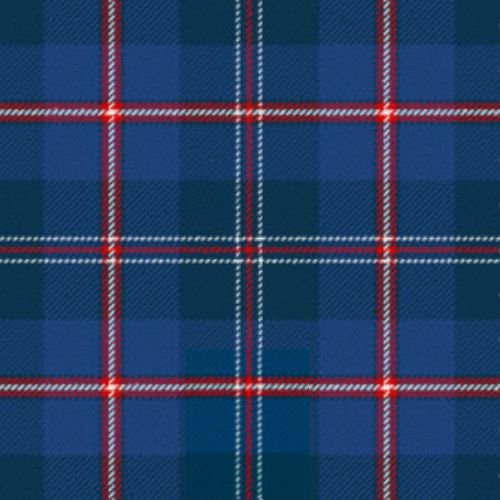 The tartan in the image features a refined combination of deep navy blue, accented with vibrant red and white lines. The dominant navy blue symbolizes depth, loyalty, and the expansive Scottish skies, while the bold red lines add a touch of passion and energy. The fine white lines provide clarity and balance, creating a sophisticated and harmonious pattern. This classic blend of colors results in an elegant design, suitable for both formal and casual occasions, reflecting the timeless beauty and heritage of Scottish tradition.