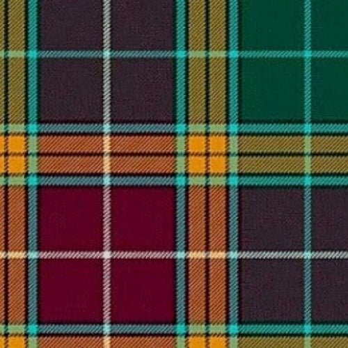 Our Buchanan Muted Tartan features a harmonious blend of forest green, maroon red, and burnt orange tones, accentuated by turquoise and yellow stripes. The thin white and black lines add a subtle yet striking contrast to the vibrant colors, creating a balanced and eye-catching pattern. Crafted from 100% acrylic wool, this tartan offers excellent quality, durability, and comfort, making it a sophisticated choice for any occasion.