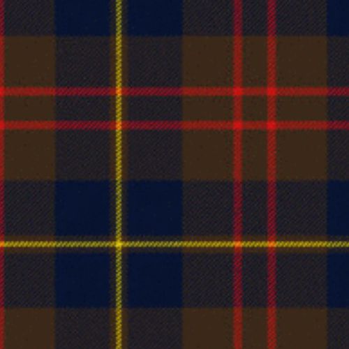 The Cameron Hunting Tartan is a striking design featuring a rich blend of deep, earthy tones that reflect the rugged landscapes of the Scottish Highlands. This tartan combines a dark blue base with warm brown and olive green squares, creating a balanced and harmonious pattern. The design is accentuated by bold red and yellow stripes that cross the tartan, adding vibrant contrast and a sense of energy to the overall look. The traditional grid pattern is typical of Scottish tartans, symbolizing the clan's strong ties to its heritage. Woven from 100% acrylic wool, this fabric is both durable and comfortable, making it ideal for traditional Scottish garments like kilts, jackets, and accessories.