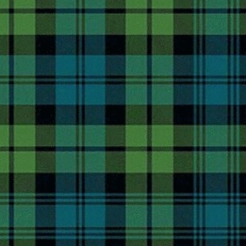 The Campbell Muted Tartan features a blend of deep green, soft blue, and black. These colors work together to give the tartan a subtle and timeless appeal. The tartan is characterized by alternating green and blue squares, symbolizing the natural landscapes of the Scottish Highlands, with darker black lines adding contrast. The design follows a traditional tartan grid, offering a more understated look compared to brighter tartans. Typically woven from high-quality acrylic wool, the fabric is both durable and comfortable, making it ideal for traditional Scottish garments. The Campbell Muted Tartan is a perfect choice for those who appreciate the elegance of a classic tartan design with a softer, more subdued color palette.