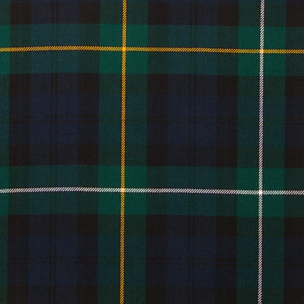 The Campbell of Loudon Tartan showcases a deep color palette with predominantly dark blue, green, and black, symbolizing Scotland's lush landscapes, deep lochs, and the strength of its heritage. The traditional grid pattern is accentuated by bold yellow stripes, adding brightness and contrast, while thin white lines provide a crisp element that enhances the intricate design. Made from 100% acrylic wool, this tartan ensures durability and comfort, making it ideal for traditional Scottish garments.