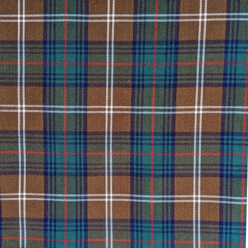 The Chisholm Hunting Tartan features a harmonious blend of colors: primarily a rich brown, accented with shades of forest green, deep blue, bright red, and crisp white. The pattern consists of bold stripes that create a striking visual impact, symbolizing strength and unity within the clan. The rich color palette reflects the natural beauty of Scotland's landscapes, making this tartan a versatile choice for both casual and formal attire. Made from 100% acrylic wool, it guarantees durability and comfort, ensuring you can wear it with pride.