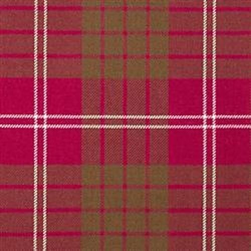 The Crawford Weathered Tartan boasts a strikingly vivid design, featuring a bold shocking pink background interlaced with thick brown and delicate white stripes. This unique color combination captures the essence of the Crawford clan's historical significance and the weathered aesthetic that defines this particular variant. The tartan's pattern, with its clean yet bold lines, offers a modern twist on a classic design, making it a perfect blend of past and present. Whether draped as a kilt or fashioned into an accessory, this tartan's design commands attention and celebrates the rich tapestry of Scottish culture.