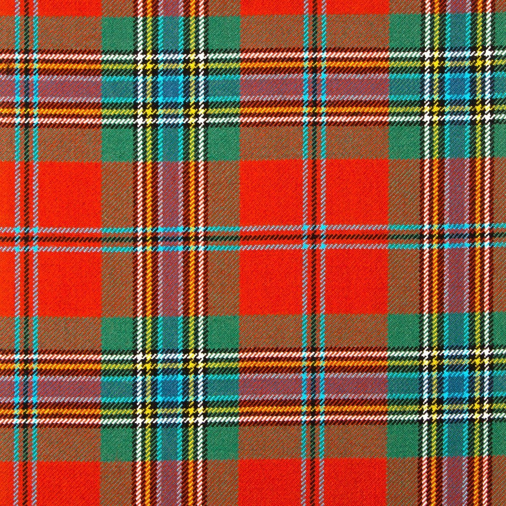This tartan features a lively and intricate pattern, with a bold red base that symbolizes passion and tradition. The design is enhanced by rich green squares that evoke the lush Scottish landscape, while earthy brown tones add warmth and grounding to the overall look. Bright turquoise stripes intersect the pattern, providing a vibrant contrast, and thin yellow and white lines weave through the design, adding layers of brightness and complexity. Crafted from high-quality acrylic wool, this tartan offers exceptional durability and comfort, making it a perfect choice for those who want to celebrate their heritage with both style and enduring quality.