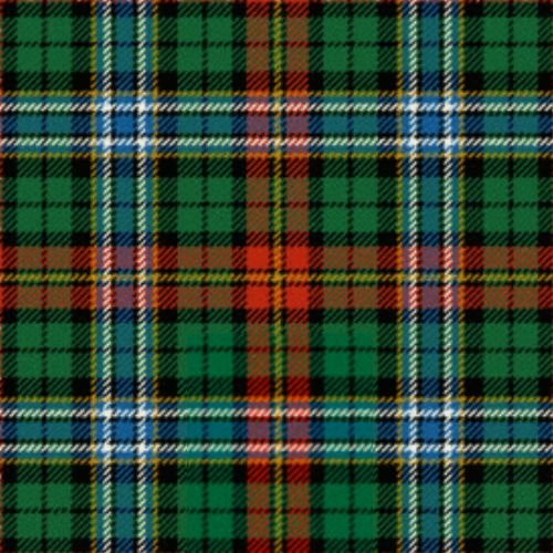 The Watt Dunfermline Ancient Tartan features a deep green base highlighted by vibrant lines of muted red, blue, yellow, white, and black. Each color holds significance: green symbolizes renewal and vitality, while red reflects passion and enthusiasm. Blue conveys a sense of tranquility and loyalty, yellow adds a touch of cheerfulness, white represents purity and clarity, and black brings depth and sophistication. Made from 100% acrylic wool, this tartan offers both durability and comfort, ensuring it can be worn for various occasions.
